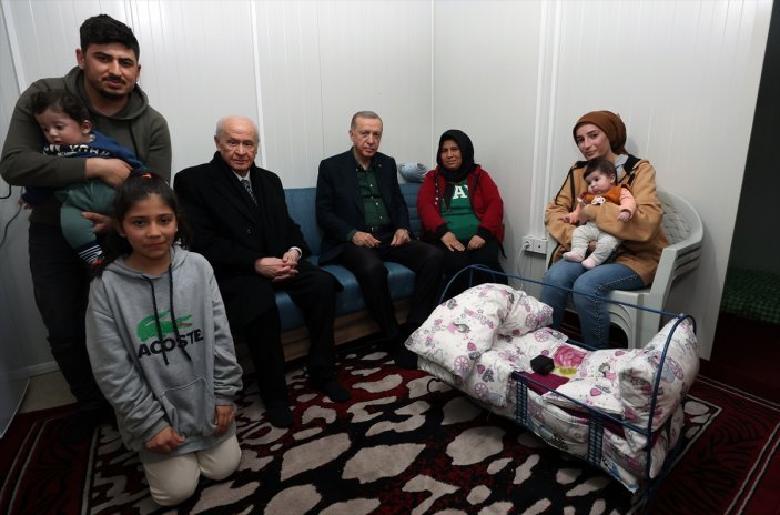 Dün akşam saatlerinde zelzelenin merkezi Kahramanmaraş’a giden Cumhurbaşkanı Erdoğan, burada konteynerda kalan Aksu ailesini ziyaret etti.